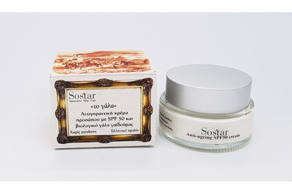 SOSTAR Αντιρυτιδικη κρεμα ημερας spf 50 με βιολογικο γαλα γαϊδουρας