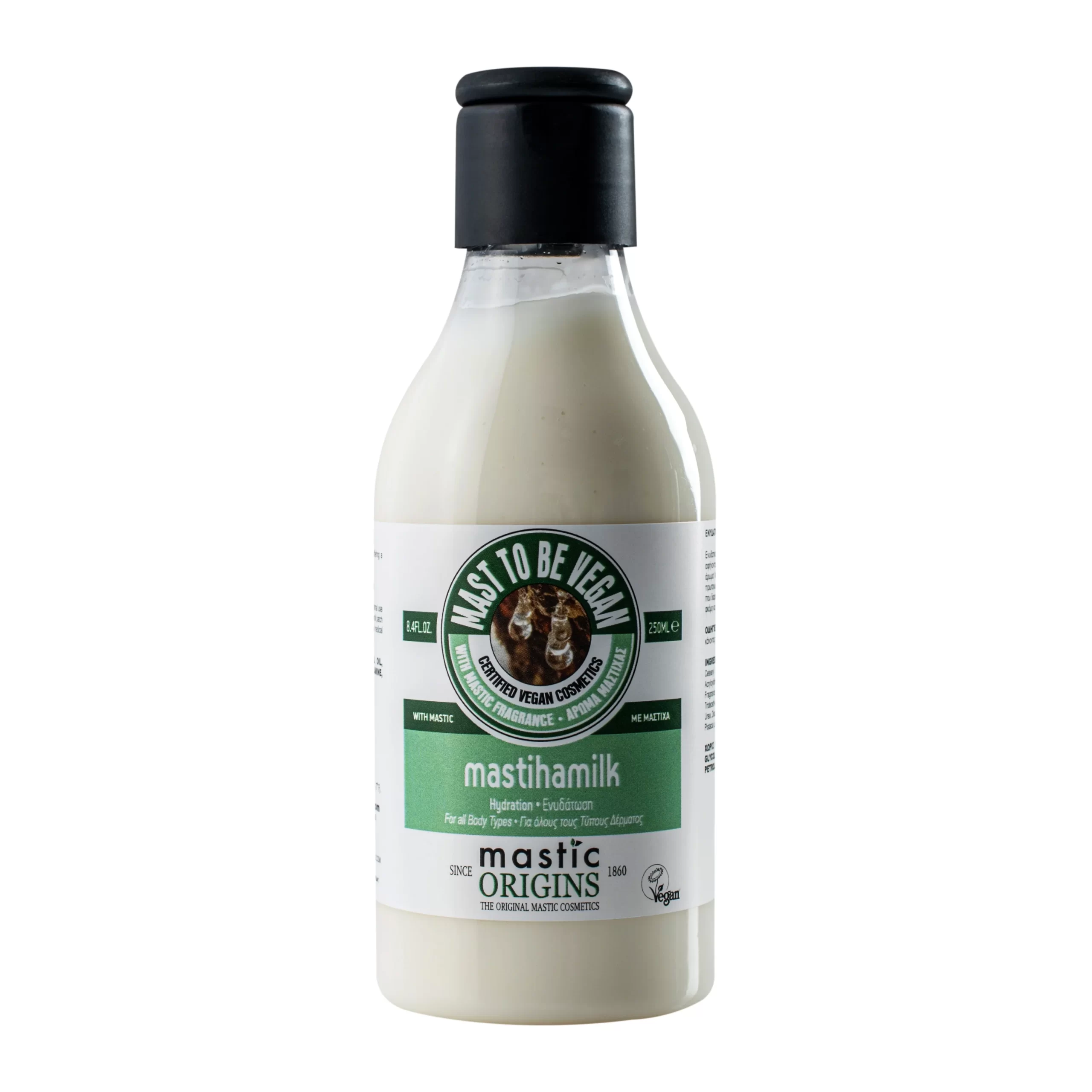 Ενυδατικό γαλάκτωμα σώματος που θρέφει το δέρμα, αφήνοντάς το αναζωογονημένο και υπέροχα αρωματισμένo με άρωμα Μαστίχας. Διαθέτει Vegan σύνθεση με την Μαστίχα πρωταγωνιστή, προσφέροντας γρήγορη ενυδάτωση και θρέψη που διαρκεί 48 ώρες. Απορροφάται αμέσως και χρησιμοποιείται ακόμη και σε νωπή επιδερμίδα.