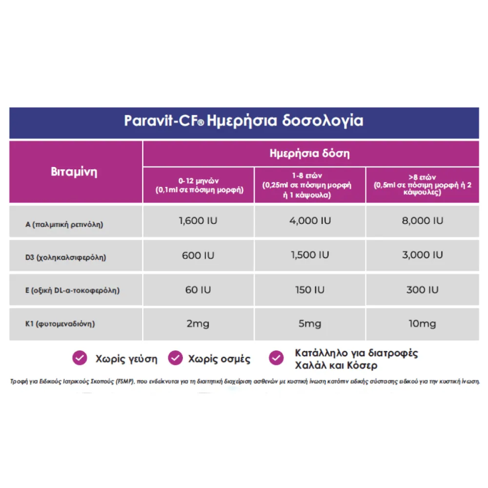PARAVIT CF– τρόφιμο για ειδικούς ιατρικούς σκοπούς για τη διαιτητική διαχείριση ασθενών με κυστική ίνωση