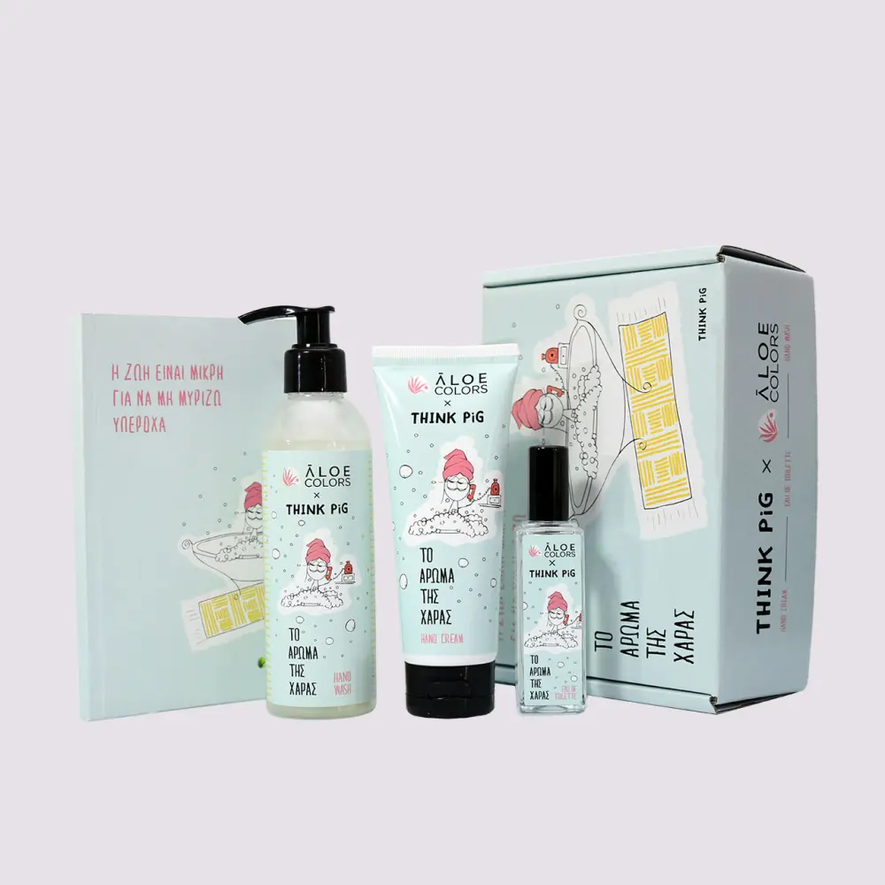 Ένα μοναδικό gift box το οποίο περιλαμβάνει κρεμοσάπουνο , κρέμα χεριών & eau de toilette. Δώρο ένα σημειωματάριο με την υπογραφή της αγαπημένης μας ελληνικής εταιρείας think pig.